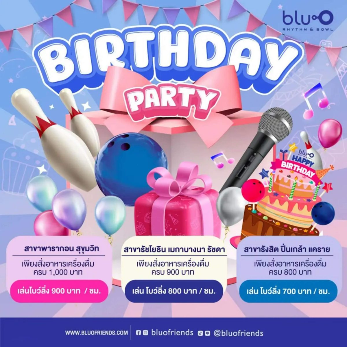 - สำหรับโบว์ลิ่งจำกัดไม่เกิน 2 เลน ต่อกลุ่ม ในกรณีต้องการเลนเพิ่ม ลูกค้าต้องสั่ง Birthday Set เพิ่ม